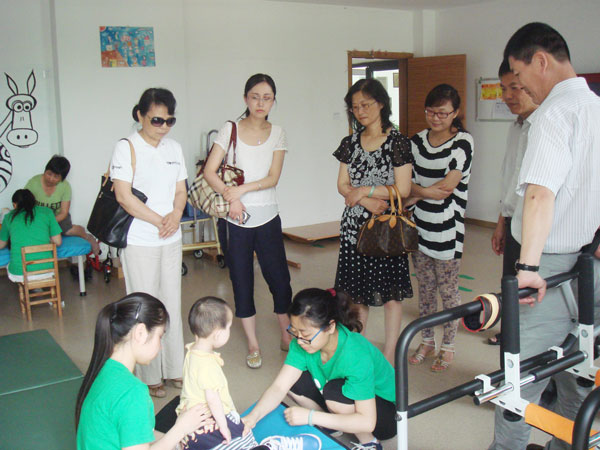 大家参观了中心的康复训练课程,详细了解了孩子们的生活和康复情况,并送上了慰问品和节日的祝福。